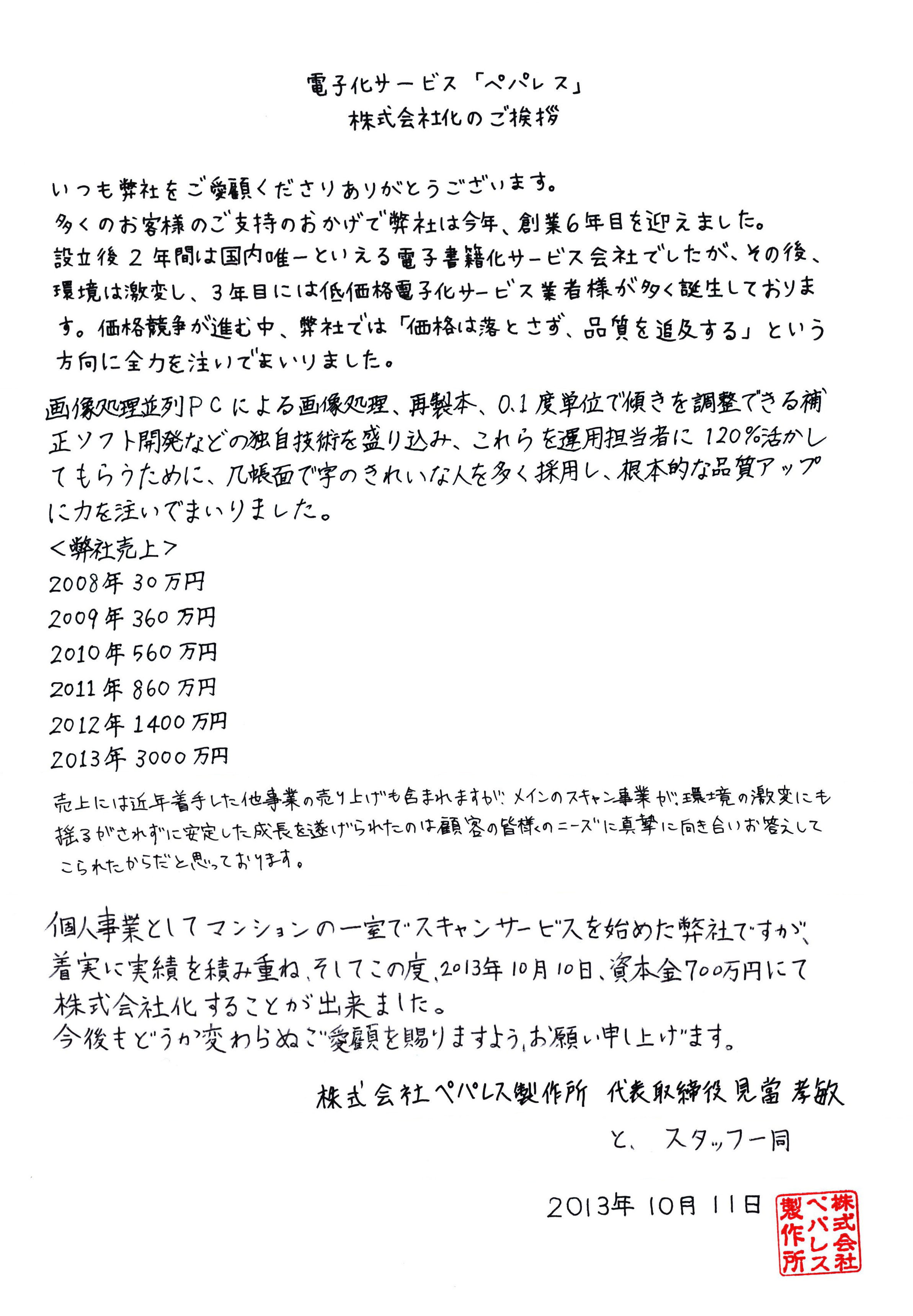 事業規模拡大に伴い、株式会社ペパレス第二製作所(資本金600万円)を設立し、物価事業を分離・別会社化しました。